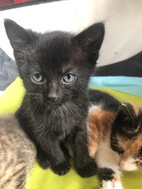 Een prachtig zwart kattenmannetje. Ook ik mag hier in deze superopvang vertoeven, tot ik groot genoeg en sterk genoeg ben,